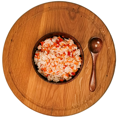 Рис дегидрированный, лук жаренный, морковь, перец сладкий, соль, растительное масло.